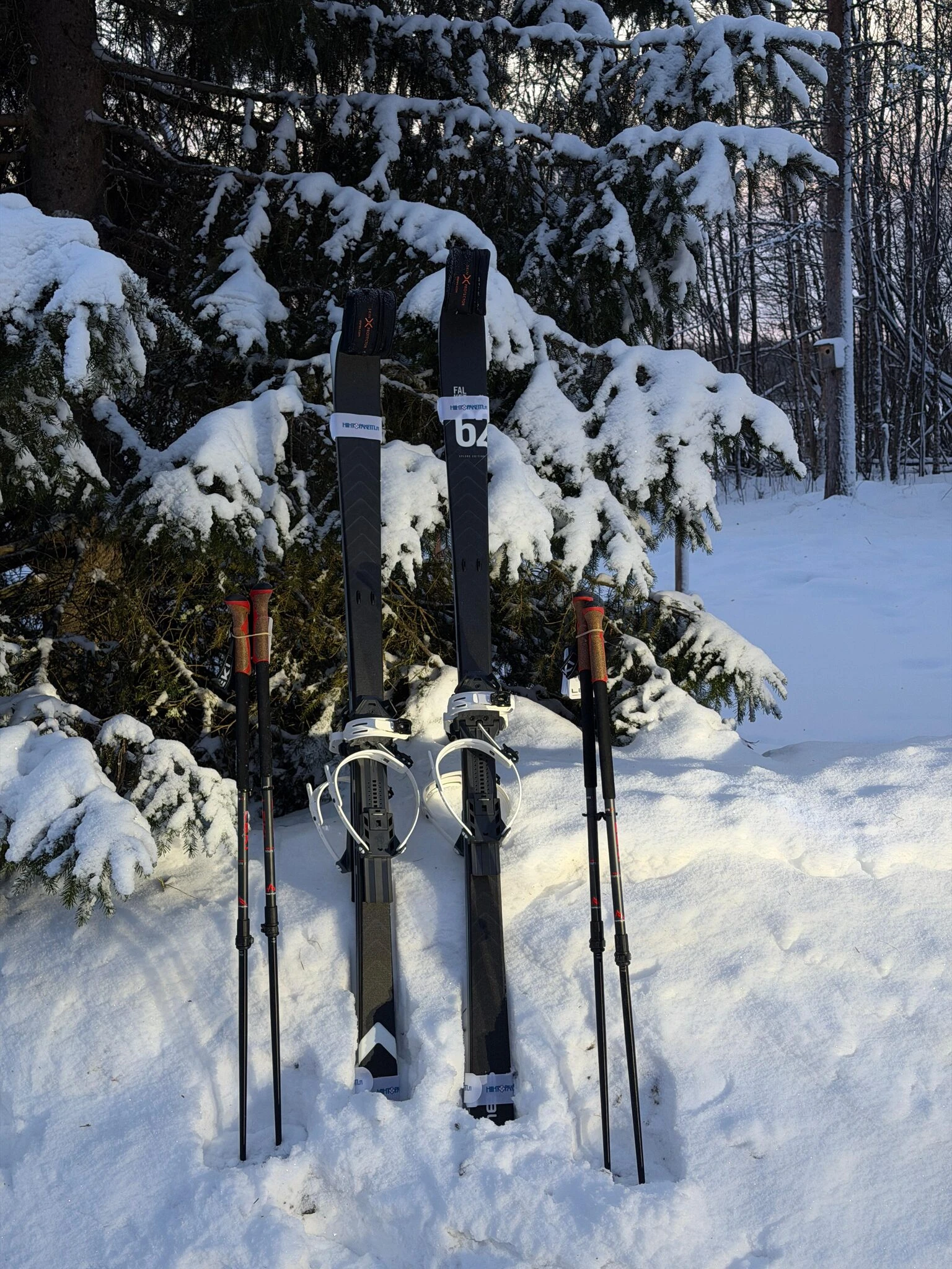 EA 2.0 -siteet mahdollistavat käytön tavallisilla talvi- tai vaelluskenkillä, joten erillisiä monoja ei tarvita. Irrotettavat nousukarvat tarjoavat lisäpitoa jyrkemmissä nousuissa ja pehmeässä lumessa. Mukana tulevat sauvat täydentävät kokonaisuuden.